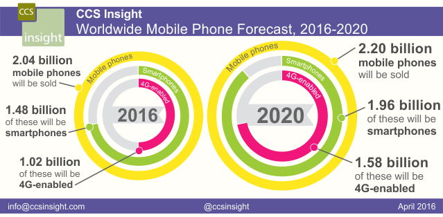 The data in this release is taken from CCS Insight’s recently published Market Forecast: Mobile Phones, Worldwide, 2016-2020.