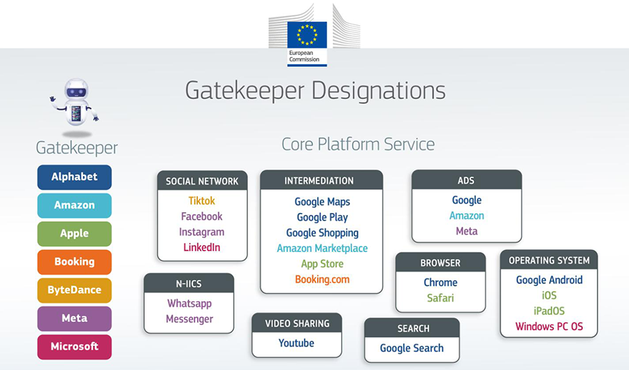 Cooperation this time stems from the EU’s Digital Markets Act (DMA), which took effect in 2024. It requires certain companies to enable greater competition and interoperability among devices. The EU has identified seven “gatekeeper” companies — Alphabet, Amazon, Apple, Booking, ByteDance, Meta and Microsoft — that it believes have undue control over consumers’ choice of online services (see below).