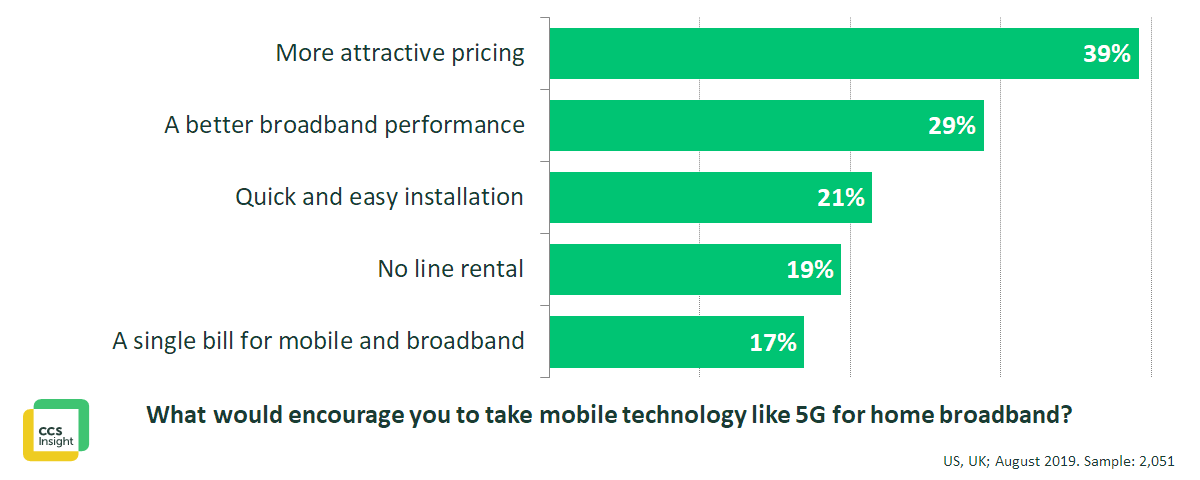 But creating an association between mobile-centric brands and home broadband services could be a challenge. In the UK, more people told us they would consider taking 5G for home broadband from providers with an existing presence in this market, notably BT and Sky.