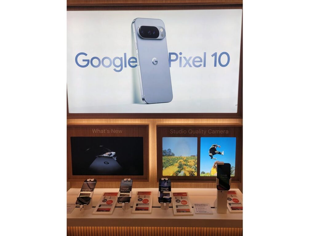 As in all stores, Vodafone is strongly promoting the new Google Pixel 10 range of smartphones, which was announced a few days earlier. Pixel offers a welcome alternative to Apple and Samsung phones, which dominate the market. However, I suspect the latest iPhone, which will be announced today, will soon take centre stage once again.