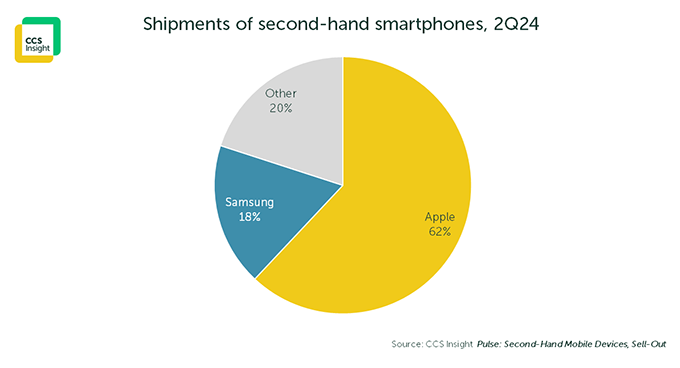 London, 18 September 2024: The latest research from CCS Insight found that the organized second-hand smartphone market enjoyed year-on-year growth of 7% in the second quarter of 2024. The company attributes this rise to ongoing economic recovery in most regions as consumers’ financial situations gradually improve.